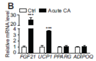 Ù Ucp1與Fgf21的mRNA水平在肉桂醛的處理后有顯著上升(圖片來(lái)源:《Metabolism - Clinical and Experimental》)